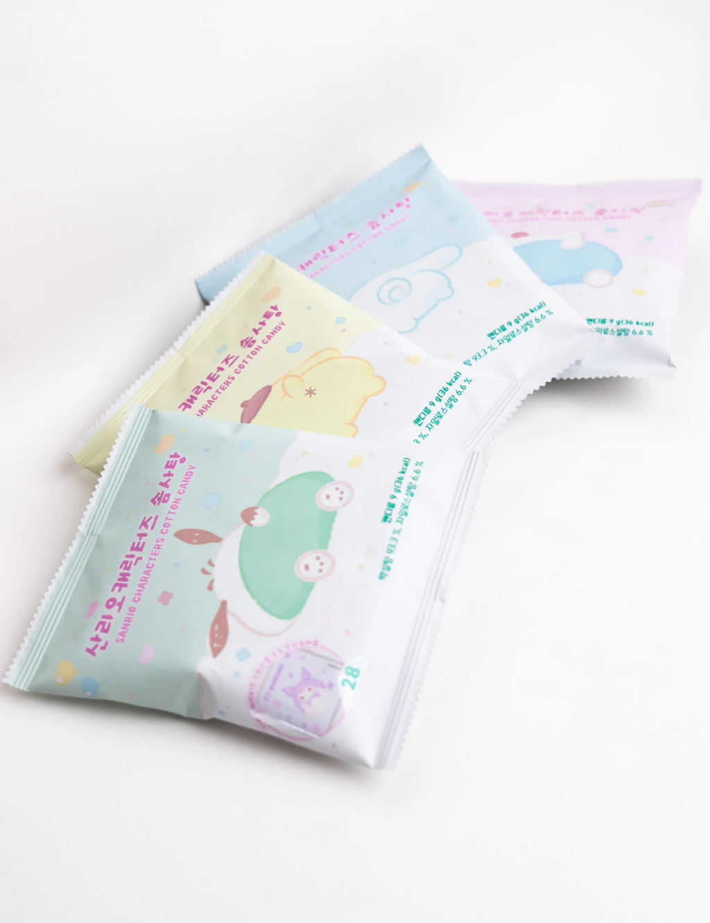 O Sanrio Characters Cotton Candy 9g é um produto doce inspirado nos personagens icônicos da Sanrio, como Hello Kitty, My Melody, e outros.Esse algodão doce é uma maneira divertida e doce de aproveitar um clássico, com a marca Sanrio trazendo um toque de fofura para a experiência.